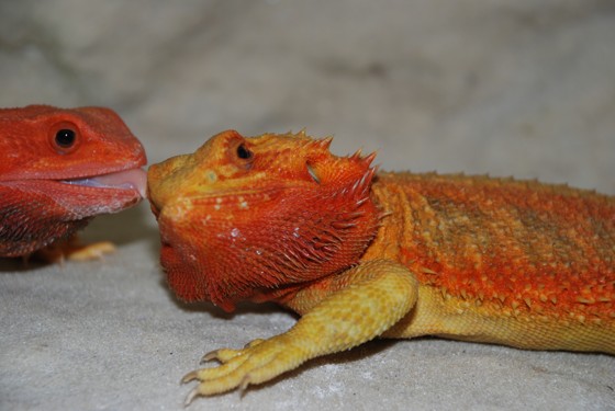 Máj - lásky čas je za dveřmi a naše agamy si užívají svůj pestrý jídelníček obohacený o květy z ovocných stromů. Sameček "Camelot" se sice ještě mladík, ale přes zimu hezky vyrostl a nebyl důvod před ním jeho nejstarší nevěstu "Carminu" dále schovávat. Vždyť kdy jindy je ideální příležitost k prvnímu sblížení než pod rozkvetlým stromem.. :-)